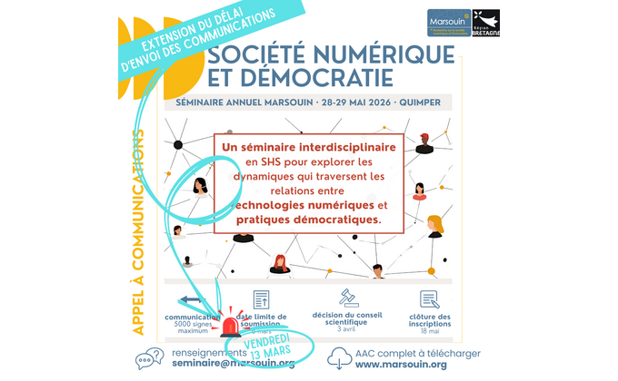 En outre, plusieurs travaux mobilisant des chercheur·ses Marsouin ces derniers mois nous encouragent à orienter le séminaire vers la thématique « Société numérique et Démocratie ».